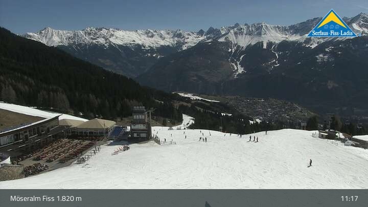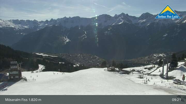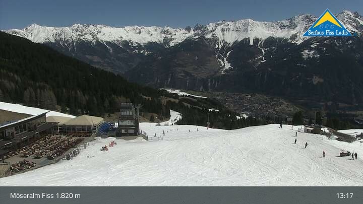 Genieße die Aussicht vom Bergrestaurant Möseralm, das sich oberhalb von Fiss befindet. Dort findest du auch einen großen Sommer Funpark.