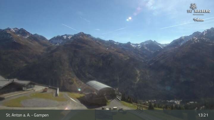 Genieße den Ausblick vom Gampen Restaurant an der Bergstation der Gampenbahn auf die umliegende Bergwelt.