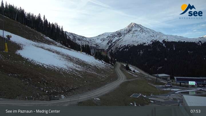 Die Webcam in See eröffnet den Blick vom Medrig Center auf rund 1.800 Metern auf die Bergstation der Medrigjoch-Gondelbahn.