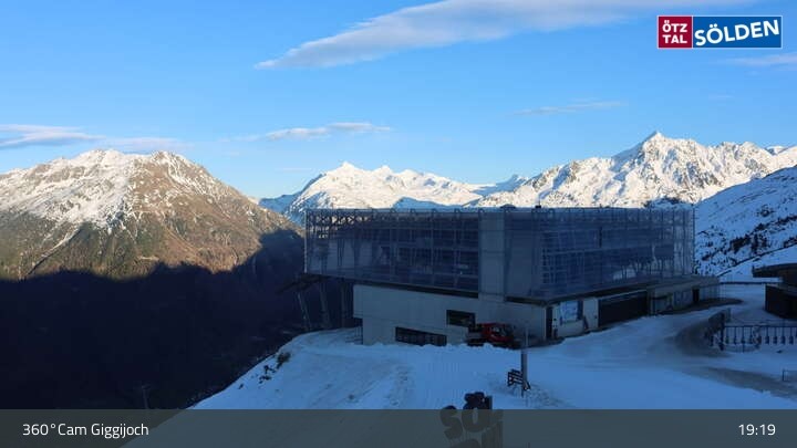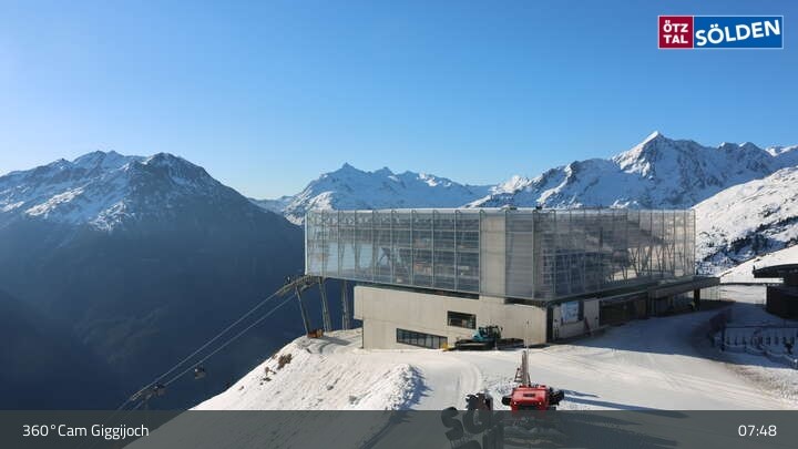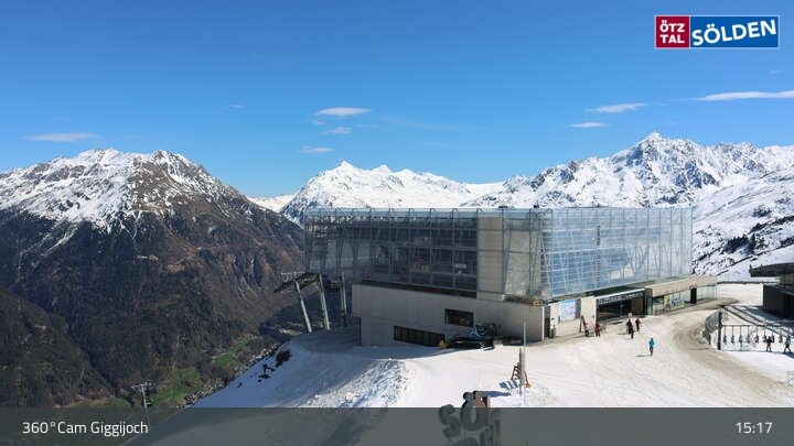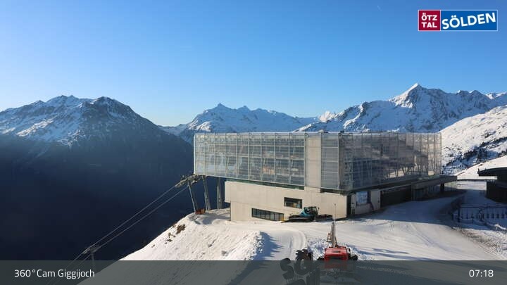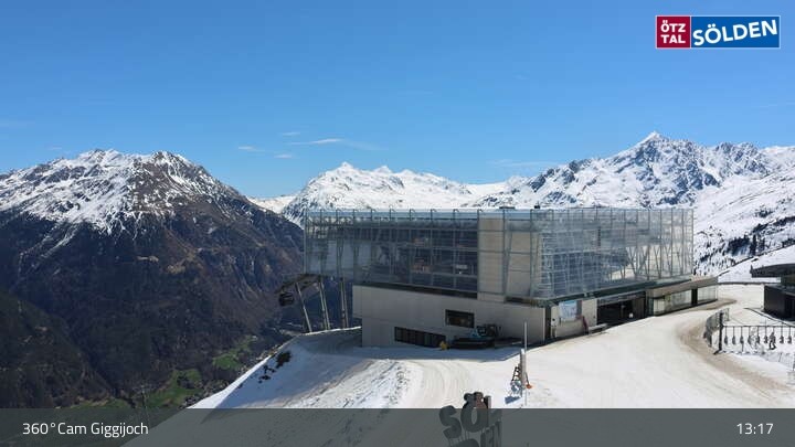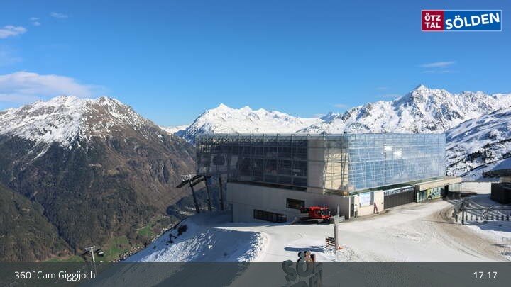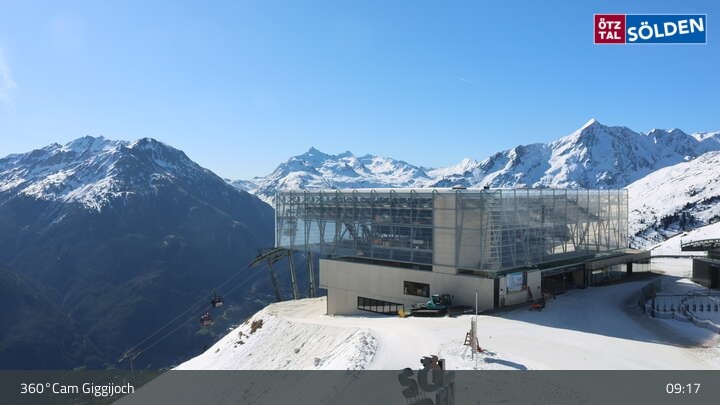 Blick vom Giggijoch auf die Bergbahnen sowie die umliegendeAlpenwelt von Sölden.