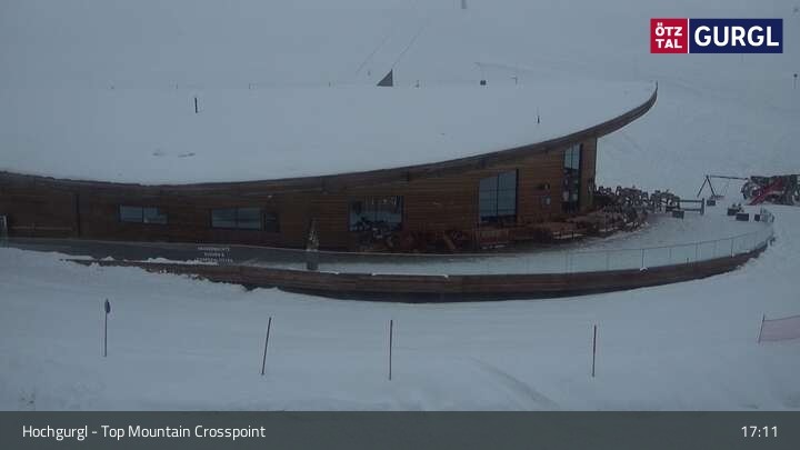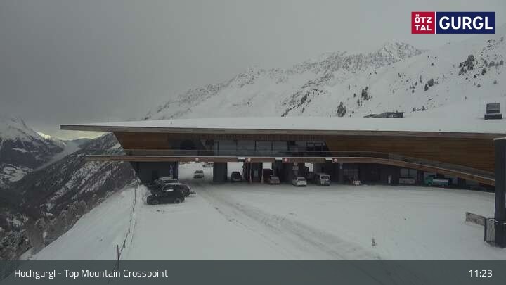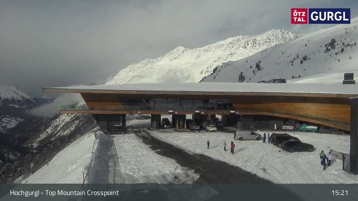 Hier blickst du auf den Top Mountain Crosspoint bei Hochgurgl im Tiroler Ötztal. Es handelt sich dabei um die Mautstation zur Timmelsjocher Hochalpenstraße. In dem Gebäude befindet sich unter anderem auch das höchste Motorradmuseum der Welt.