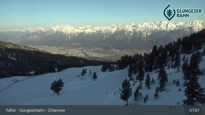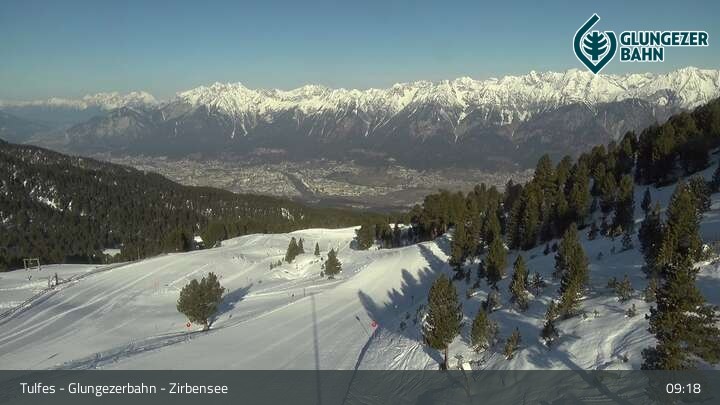 Die Webcam ermöglicht einen tollen Panoramablick auf die Landschaft am Glungezer. Das Bild wird unweit des Zirbensees aufgenommen.