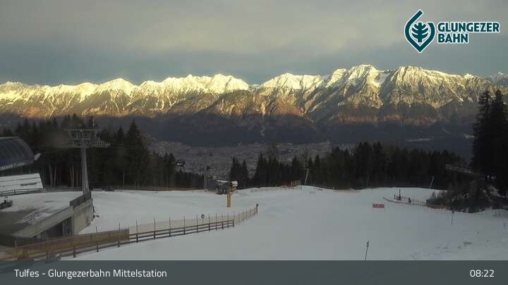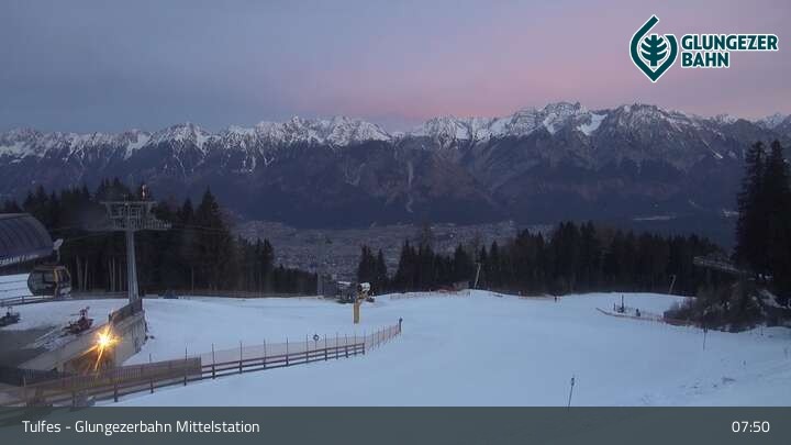 Die Webcam ist an der Mittelstation des Glungezer positioniert und zeigt einen tollen Panoramablick auf das Ski- und Wandergebiet in Tulfes.