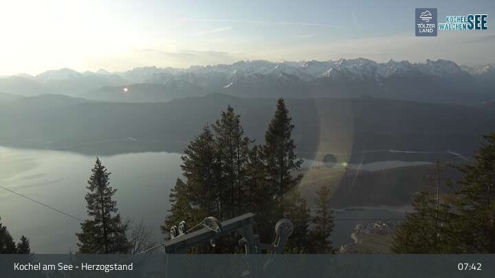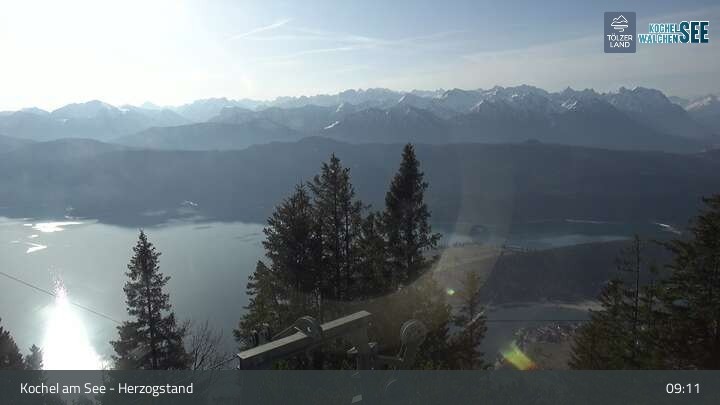 Webcam Herzogstand: Blick auf den Kochelsee, 1,609 m