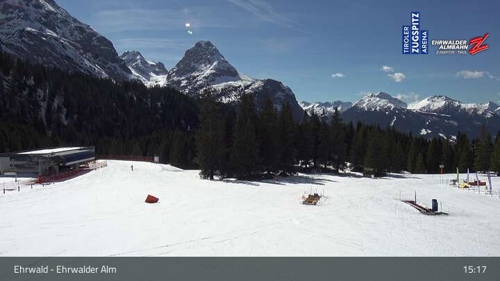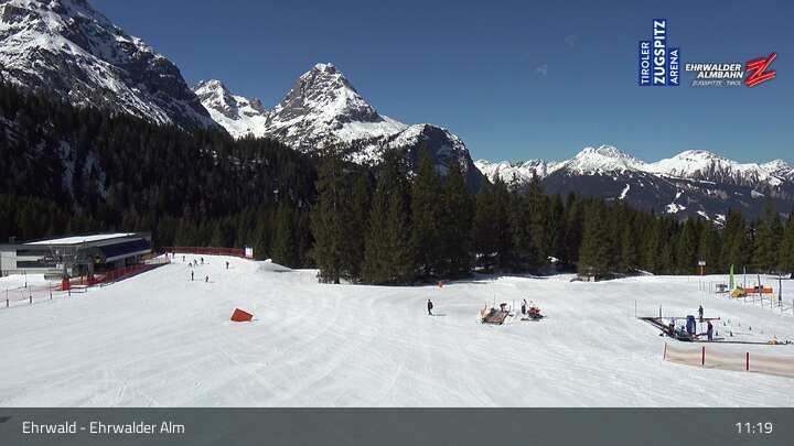 Webcam Sicht auf das Kinderland an der Ehrwalder Alm, 1,491 m
