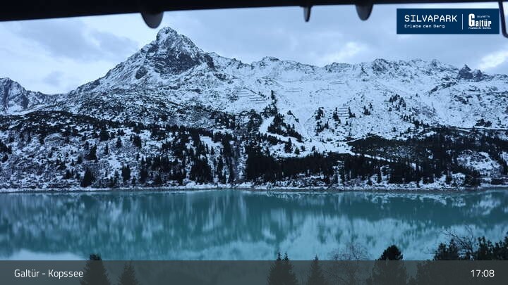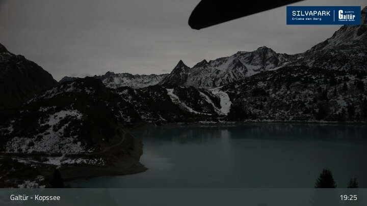 Hier siehst du den Stausee Kops in Galtür, der in den österreichischen Alpen im Bundesland Vorarlberg in der Silvretta-Gruppe liegt.