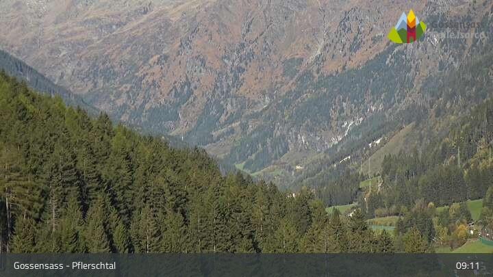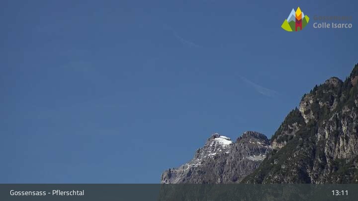 Die Kamera zeigt die Kirche Parrocchia San Valentino in Gossensass im Eisacktal.