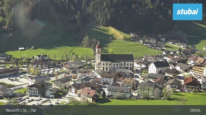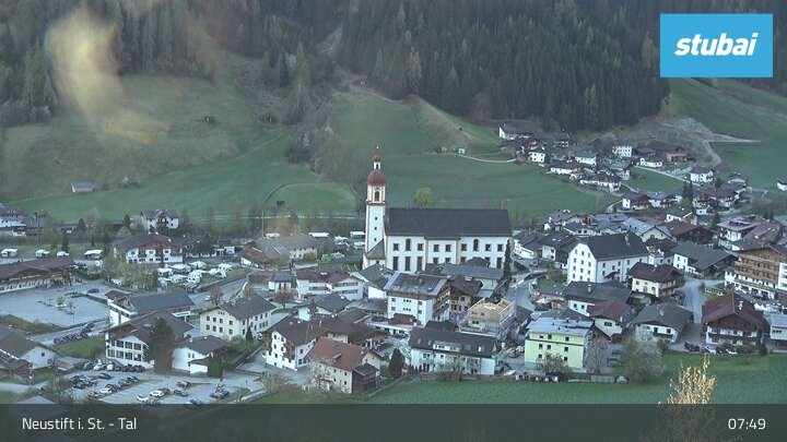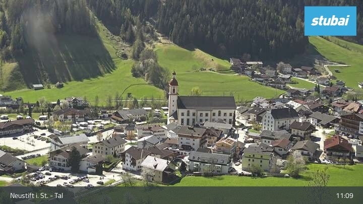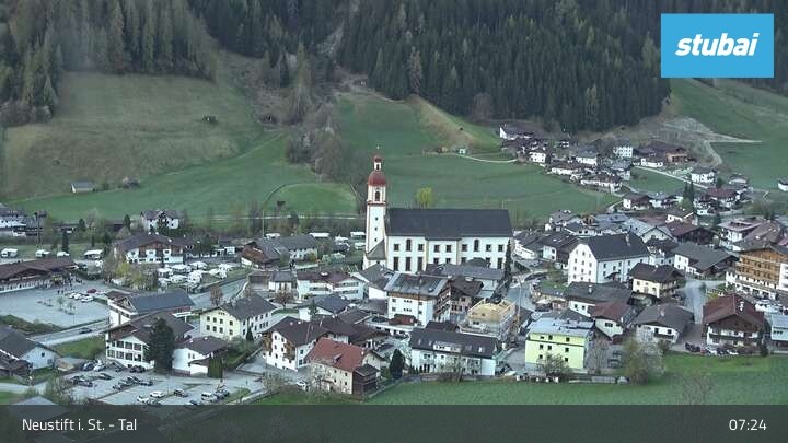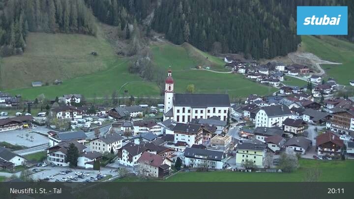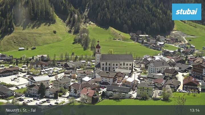 Die Webcam blickt auf den kleinen Ort Neustift im Stubaital.