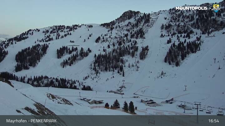 Hier blickst du auf den Vans Penken Park sowie den Sun-Jet Lift im Skigebiet Mayrhofen.