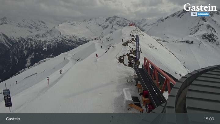 Die Webcam blickt von der Südseite der Bergstation am Stubnerkogel auf die umliegende Bergwelt von Bad Gastein.