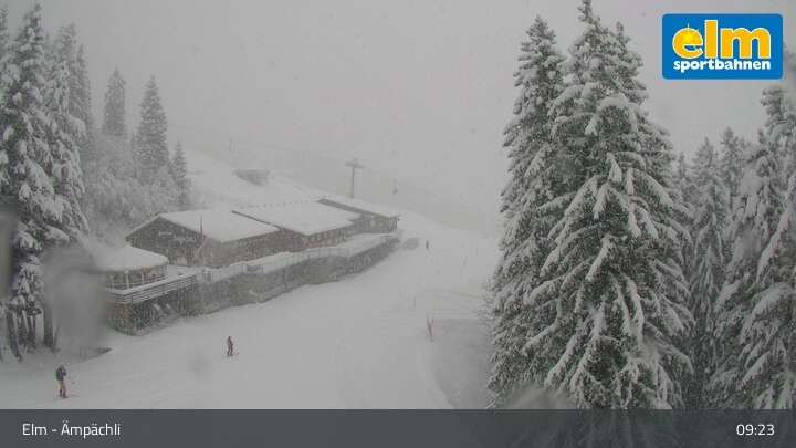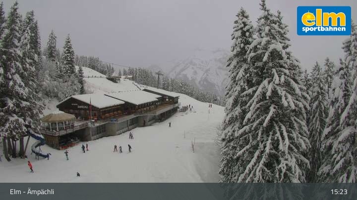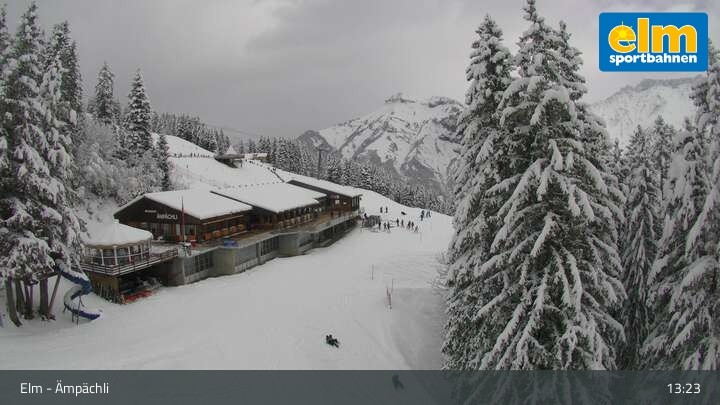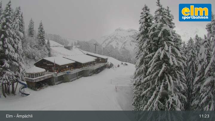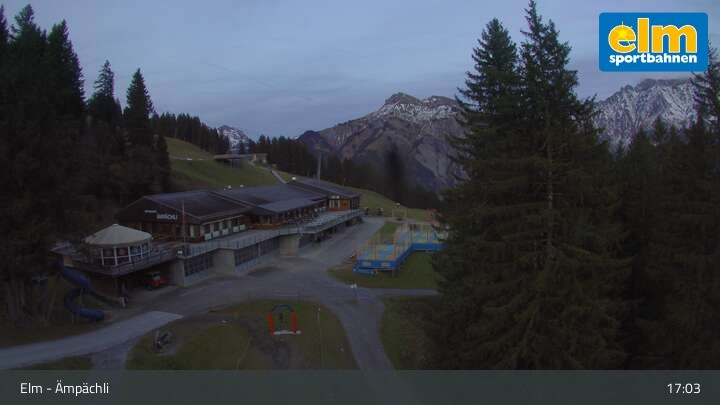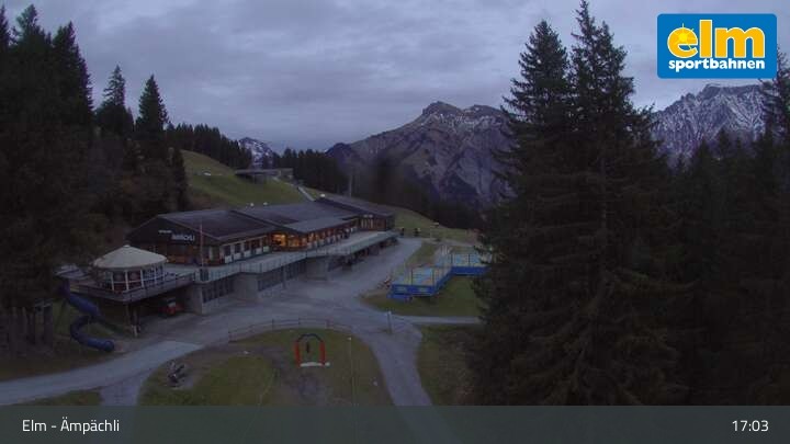 Die Webcam zeigt das Bergrestaurant Ämpächli in Elm. Es erwartet seine Besucher täglich während der Betriebszeiten der Gondelbahn Elm - Ämpächli mit einer Pasta-Station, Salatbuffet und Tagesangeboten.