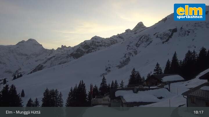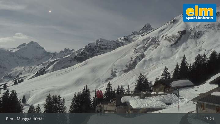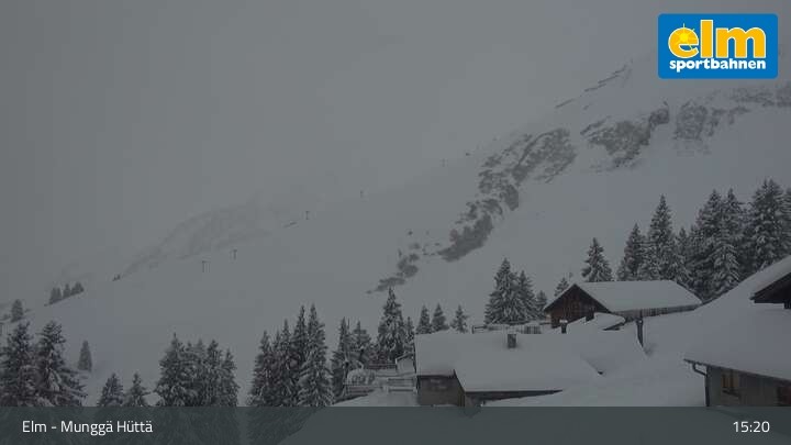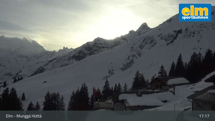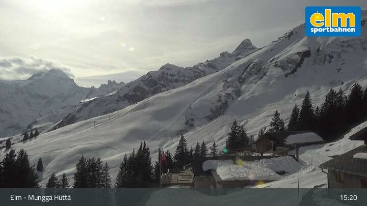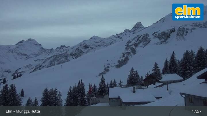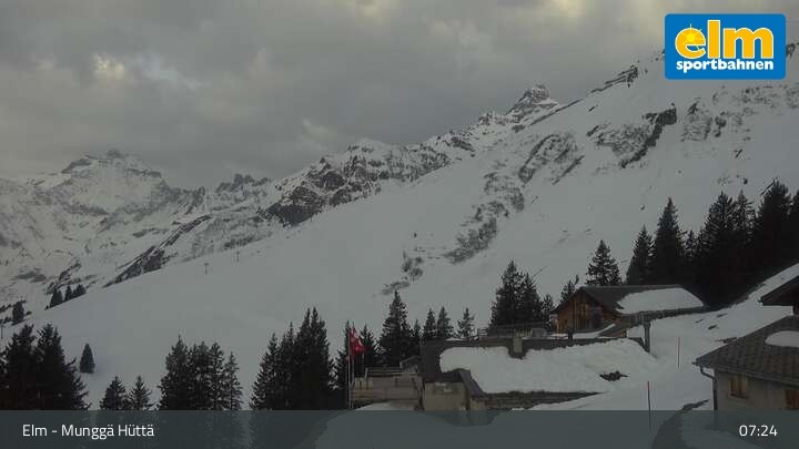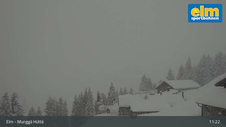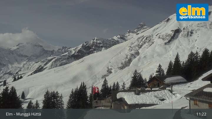 Die Webcam zeigt die Munggä Hüttä in Elm. Im Winter ideal für Skifahrer, Snowboarder und Winterwanderer zum Einkehren geeignet, ist sie im Sommer leider nicht in Betrieb.
