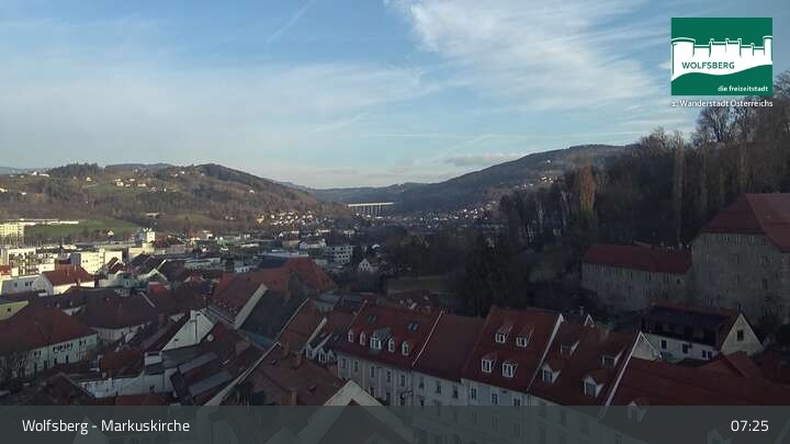 Diese Webcam befindet sich an der Markuskirche im Kärntner Ort Wolfsberg (Lavanttal, Österreich). Du kannst unter anderem die Altstadt sowie das Schloss Wolfsberg erkennen.