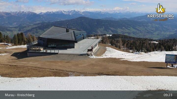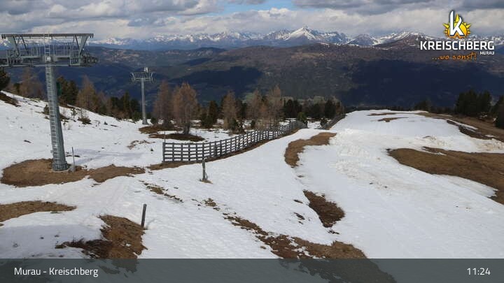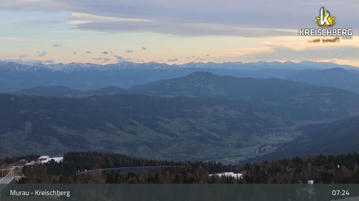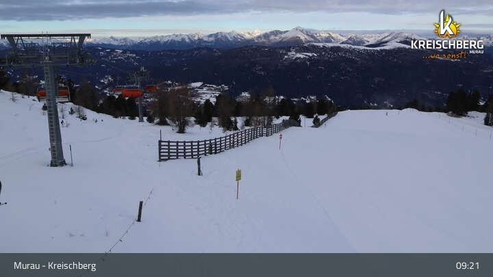 Hier siehst du den Ausblick von der Bergstation des Sessellifts Orange Sixpack am Kreischberg.