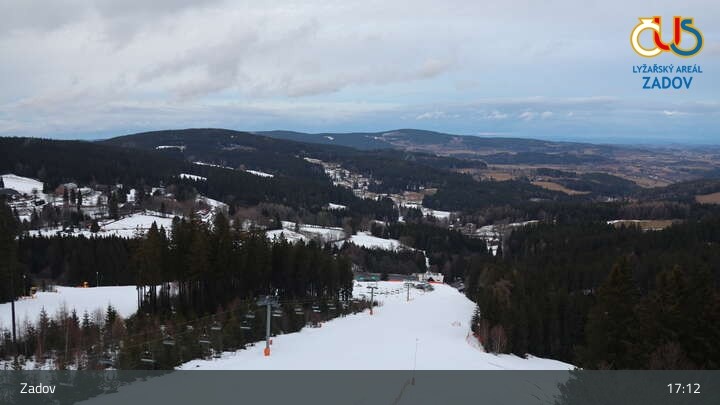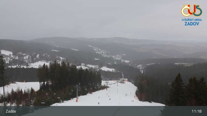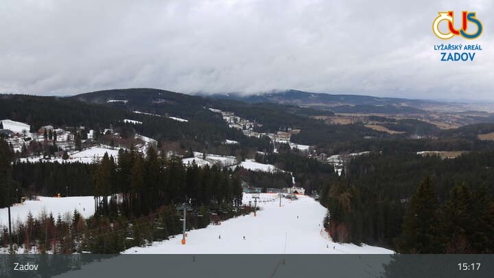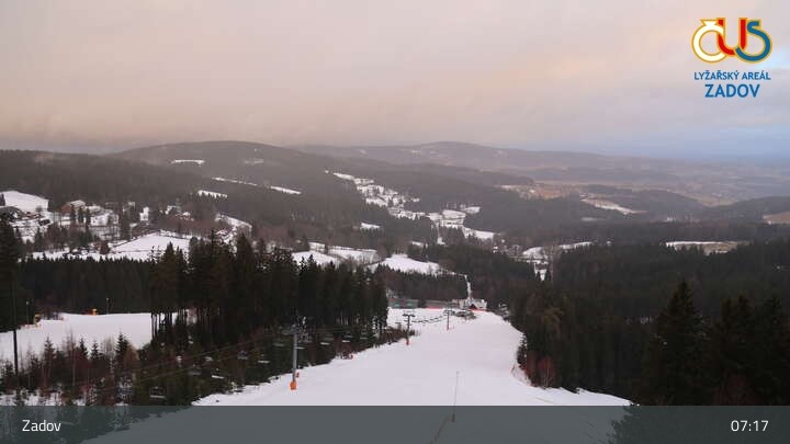 Hier blickst du auf das Wintersportgebiet Zadov-Churanov. Es befindet sich in Tschechien an der Grenze zum Nationalpark Böhmerwald.