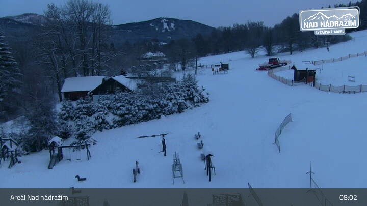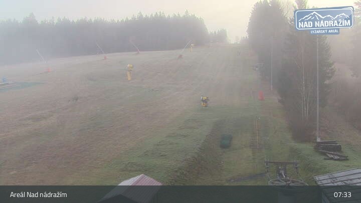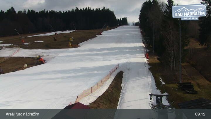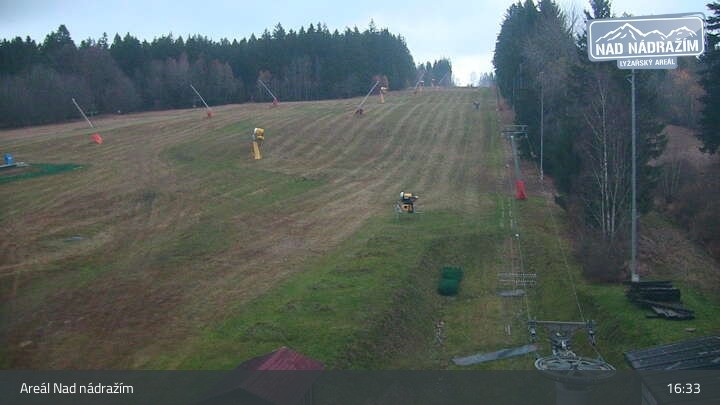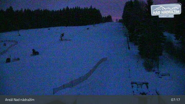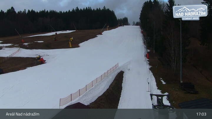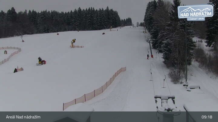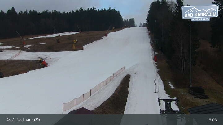 Die Webcam zeigt die Skilifte im Areal Nad nádražím bei Železná Ruda nahe der deutschen Grenze.