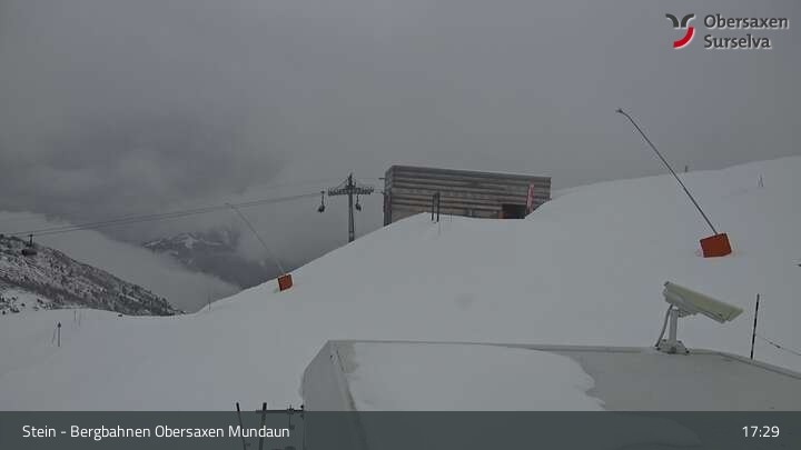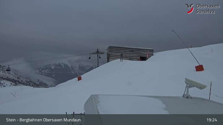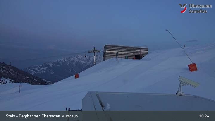 Die Webcam zeigt die Bergstation des Misanenga - Untermatt Lifts in Obersaxen in Graubünden. Die umliegende Alpenwelt ist ideal für Wanderungen und Mountainbiken geeignet.