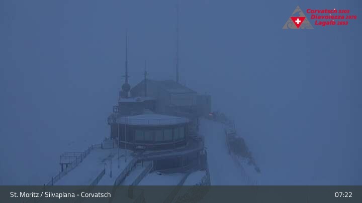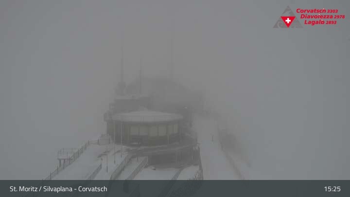 Die Webcam zeigt einen tollen Panoramablick von der Bergstation der Seilbahn am Corvatsch auf den Silvaplanersee.