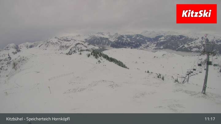 Die Webcam befindet sich auf rund 1.700 m Höhe und blickt auf den Speicherteich Hornköpfl sowie die Kitzbüheler Alpenwelt.