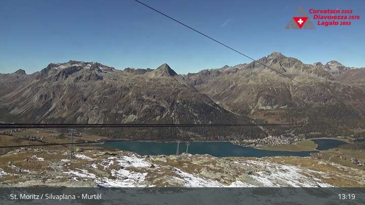 Blick über die Oberengadiner Seen in Graubünden von der Station Murtel aus.