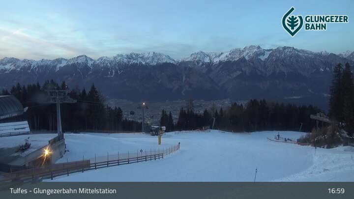 Webcam Tulfes: Blick von der Mittelstation am Glungezer, 1,553 m