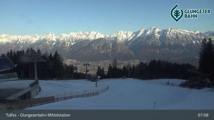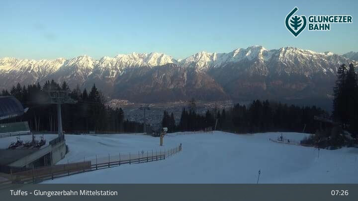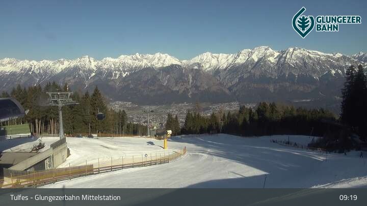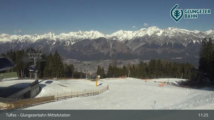 Die Webcam ist an der Mittelstation des Glungezer positioniert und zeigt einen tollen Panoramablick auf das Ski- und Wandergebiet in Tulfes.