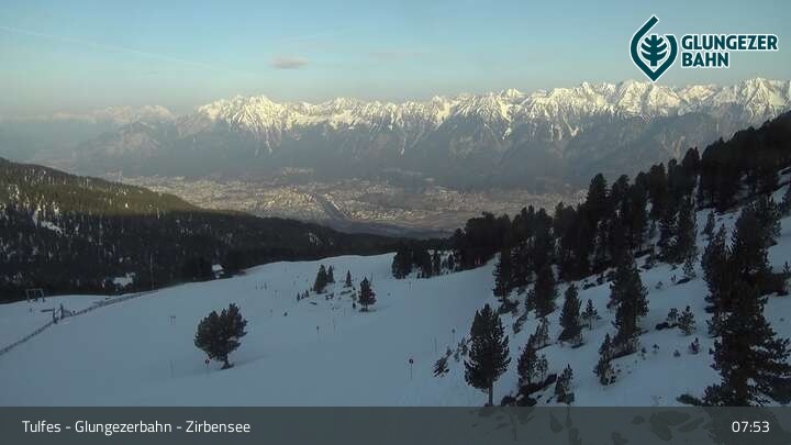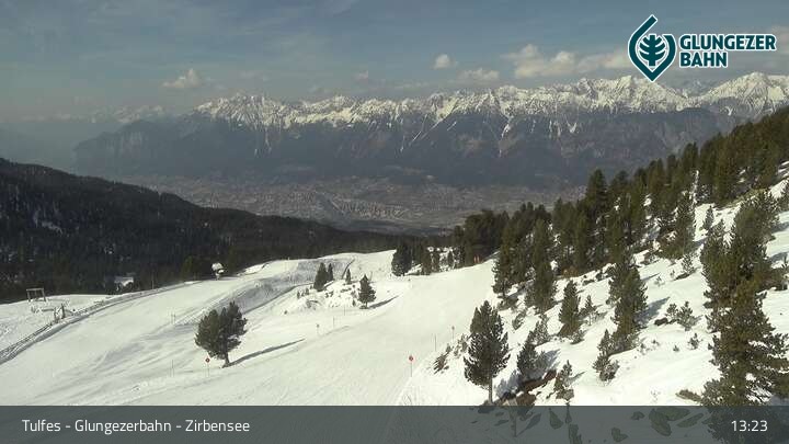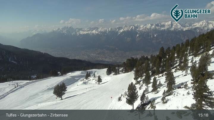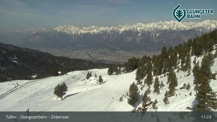 Die Webcam ermöglicht einen tollen Panoramablick auf die Landschaft am Glungezer. Das Bild wird unweit des Zirbensees aufgenommen.