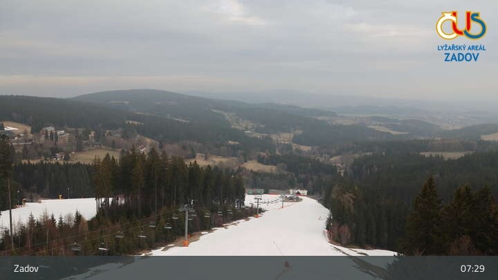 Hier blickst du auf das Wintersportgebiet Zadov-Churanov. Es befindet sich in Tschechien an der Grenze zum Nationalpark Böhmerwald.