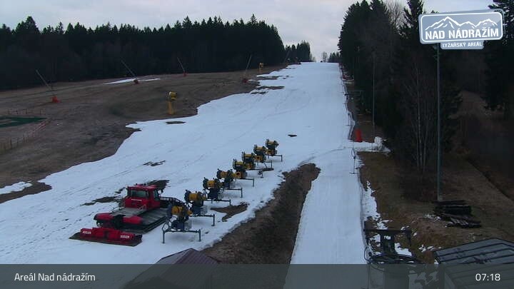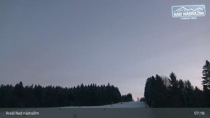 Die Webcam zeigt die Skilifte im Areal Nad nádražím bei Železná Ruda nahe der deutschen Grenze.