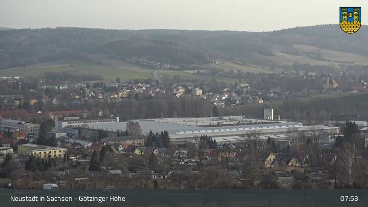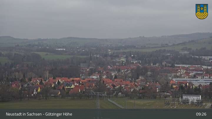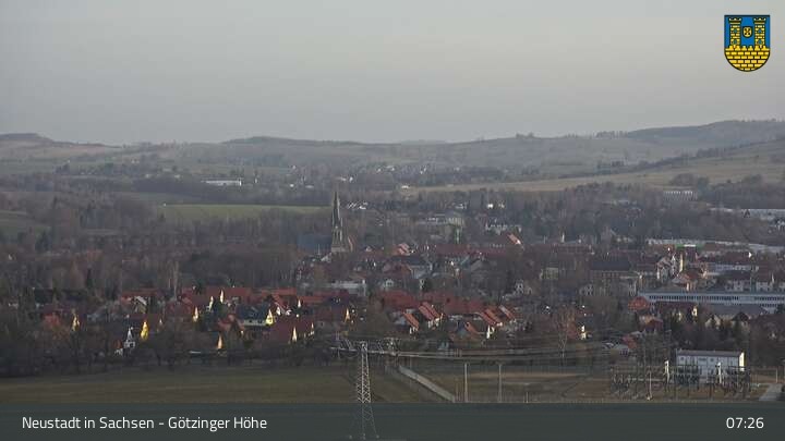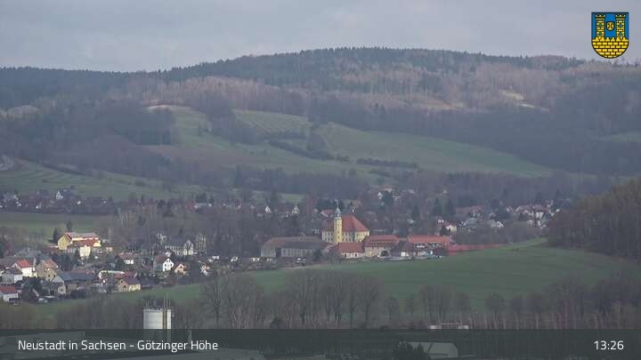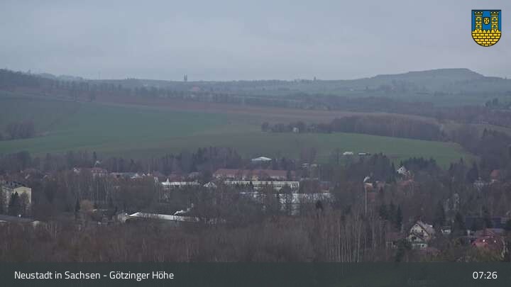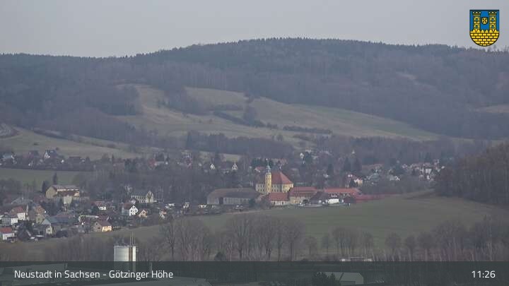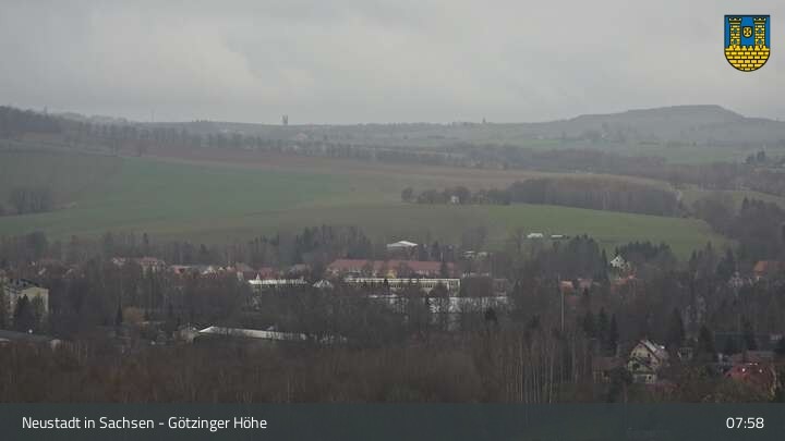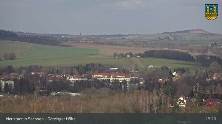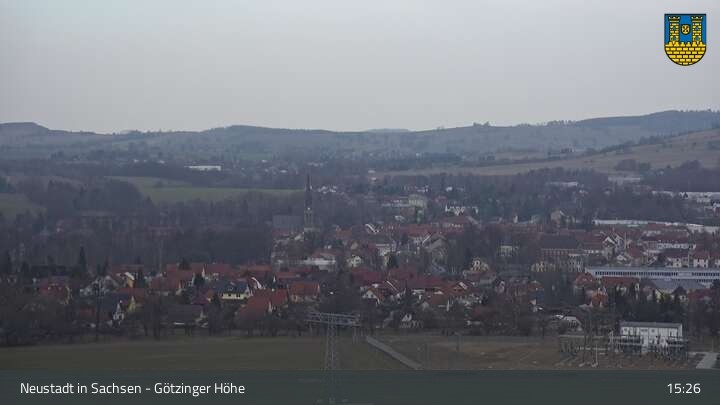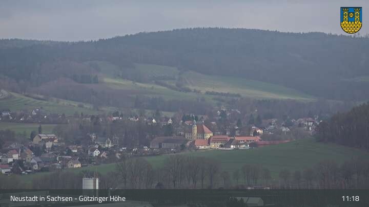 Hier siehst du Neustadt in Sachsen, eine Kleinstadt im Elbsandsteingebirge. Die Webcam befindet sich südlich der Stadt an der Götzinger Höhe.