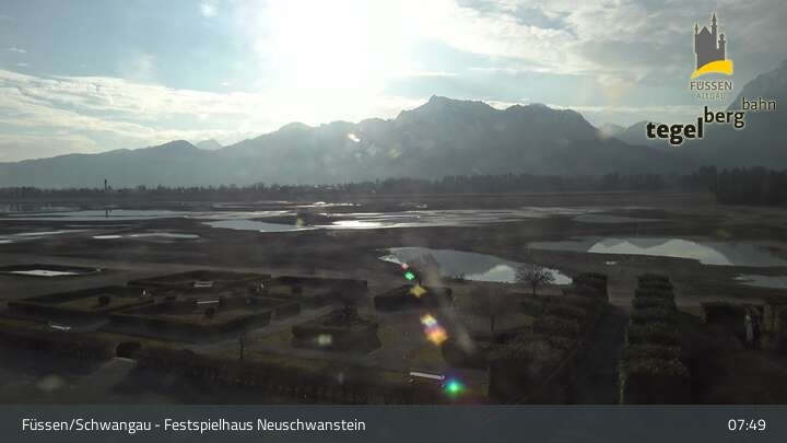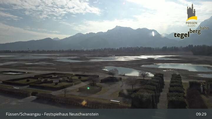Die Webcam blickt auf den Garten von Ludwigs Festspielhaus in Füssen am Forggensee.