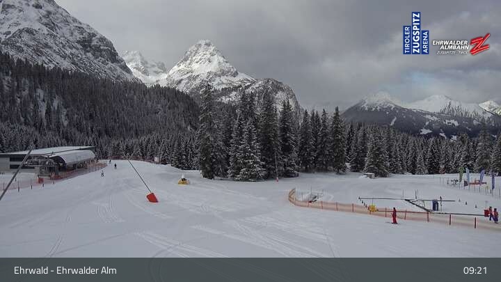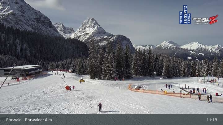 Webcam Sicht auf das Kinderland an der Ehrwalder Alm, 1,491 m