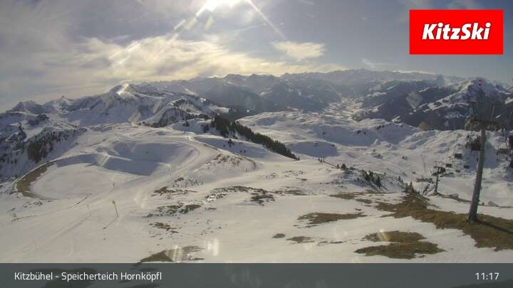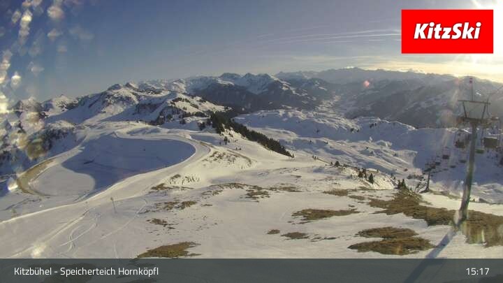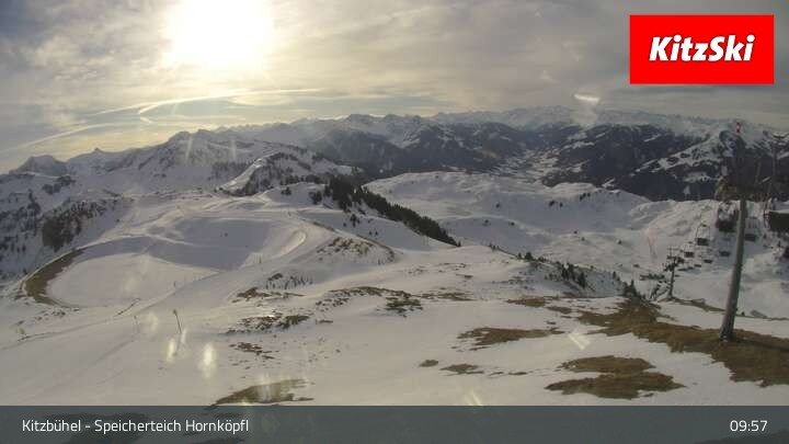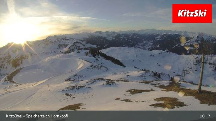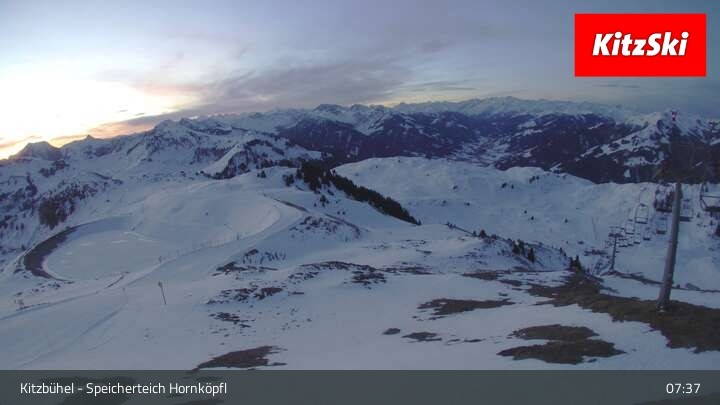 Die Webcam befindet sich auf rund 1.700 m Höhe und blickt auf den Speicherteich Hornköpfl sowie die Kitzbüheler Alpenwelt.