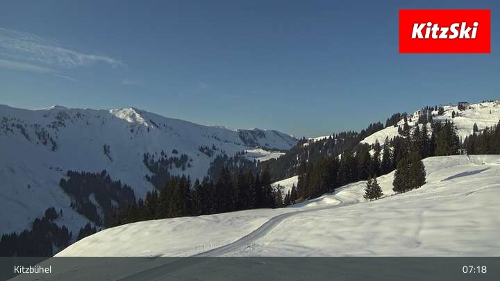 Die Webcam zeigt der den Blick vom Berghaus Walde am Hahnenkamm. Gut erkennen kann man unter anderem die Bergstation der Hahnenkammbahn.