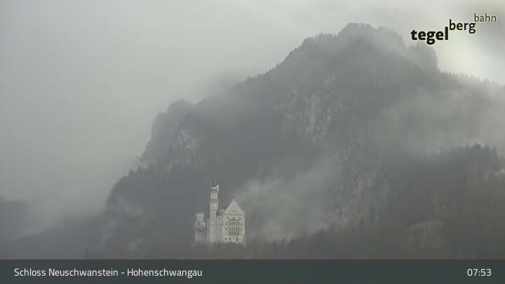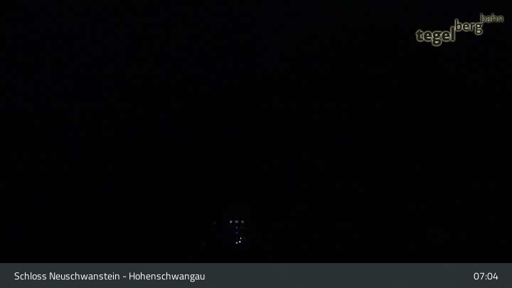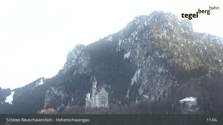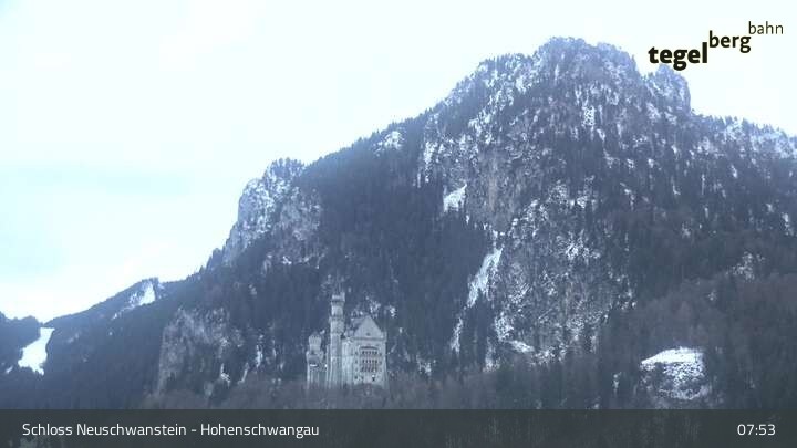 Die Kamera befindet sich am Schloss Hohenschwangau und schwenkt vom Schloss Neuschwanstein zum Museum der Bayerischen Könige.