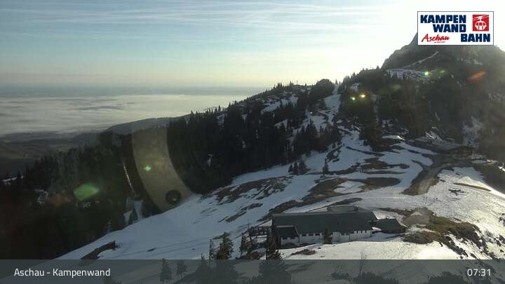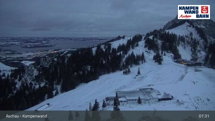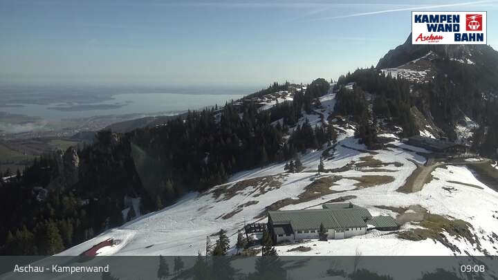 Die Webcam eröffnet dir einen Rundumblick von der Bergstation der Kampenwandbahn aus zur Sonnenalm und Roßleiten-Sessellift.