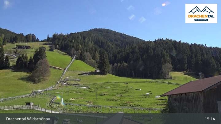 Hier siehst du aktuelle Bilder vom Familienerlebnis Drachental in Oberau in der Wildschönau. Die Webcam zeigt unter anderem den Alpine Coaster Drachenflitzer.