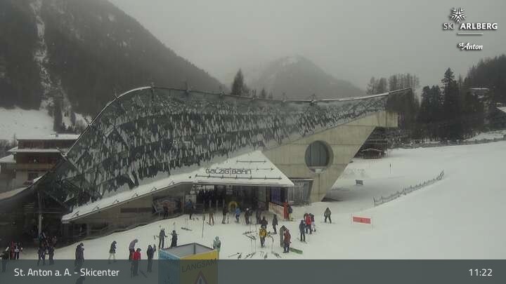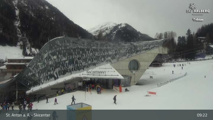 Diese Webcam zeigt dir den Blick vom Skicenter an der Talstation der Galzigbahn in St. Anton.