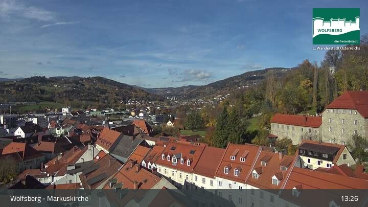 Diese Webcam befindet sich an der Markuskirche im Kärntner Ort Wolfsberg (Lavanttal, Österreich). Du kannst unter anderem die Altstadt sowie das Schloss Wolfsberg erkennen.