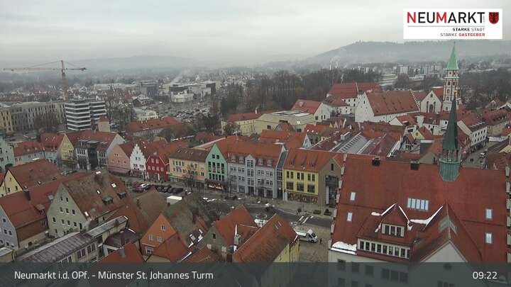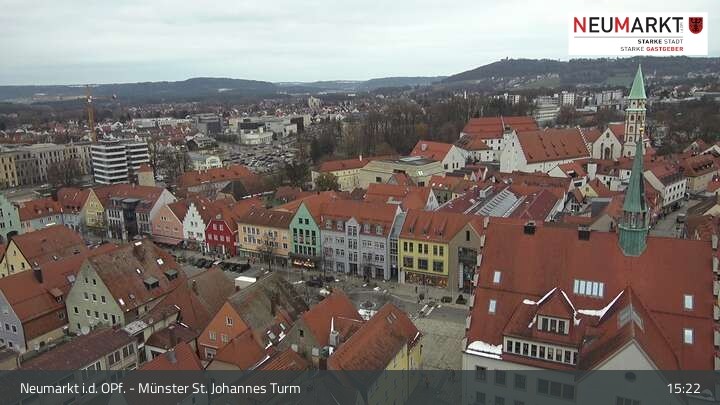 Die Webcam befindet sich am Turm der St. Johannes Kirche in Neumarkt in der Oberpfalz und zeigt einen tollen Panoramablick über die Stadt.