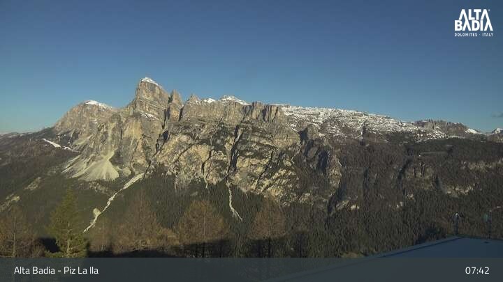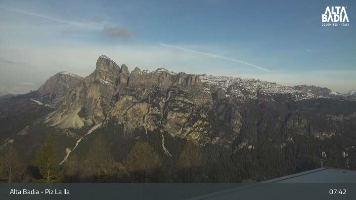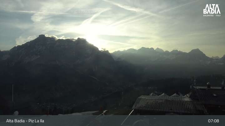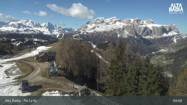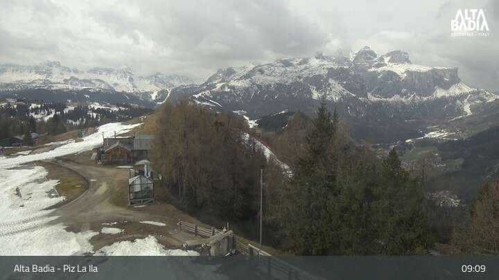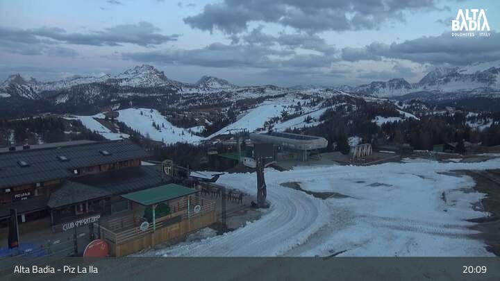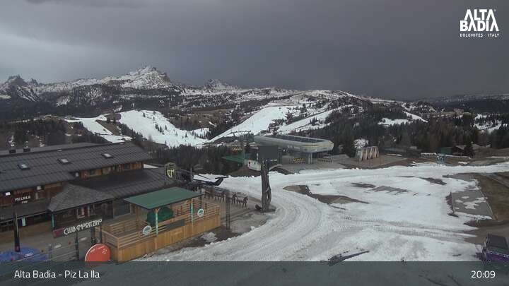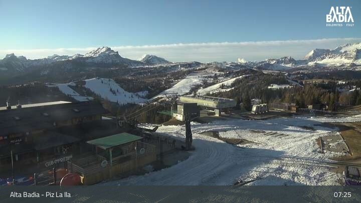 Zu sehen ist die Bergstation des Sessellifts Bamby am Piz La Ila mit Blick zum Marmolada Gletscher