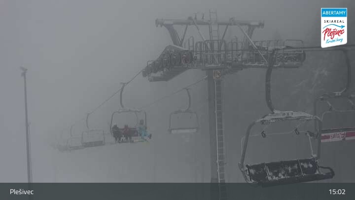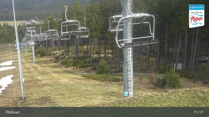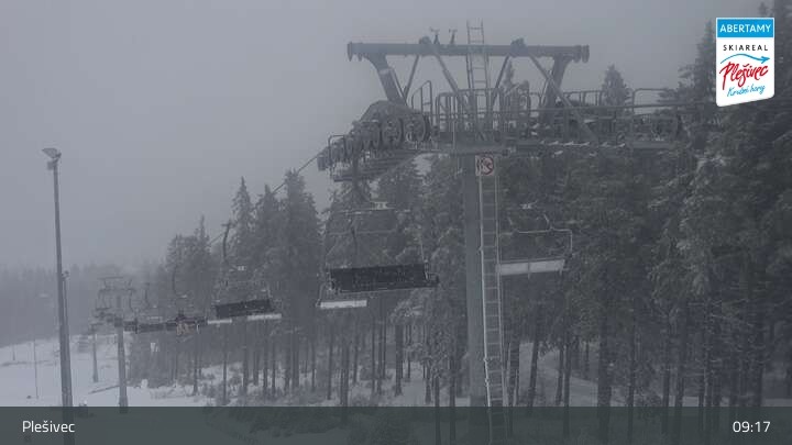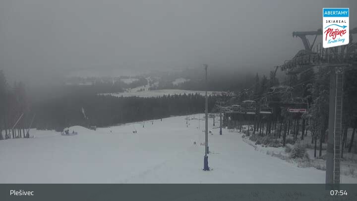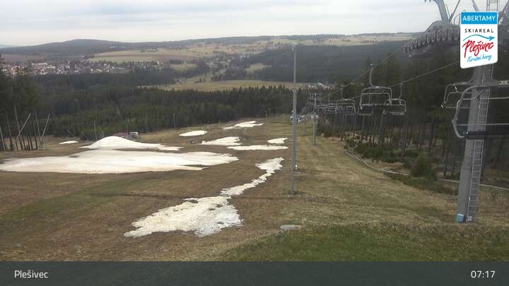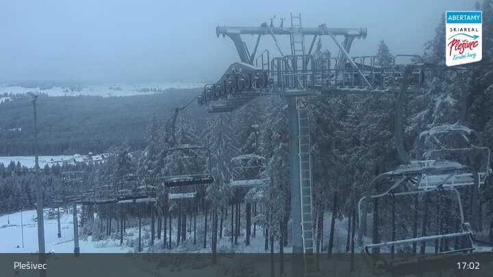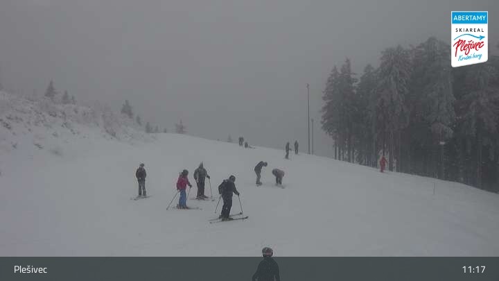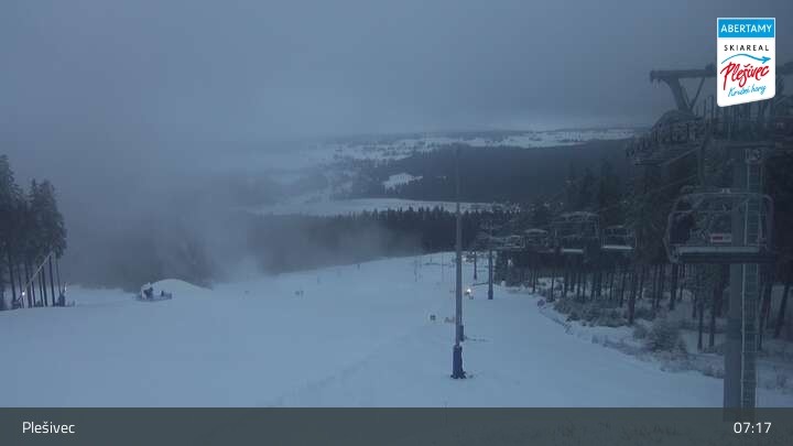 Blick auf die Skipisten im Skigebiet Albertamy - Pleßberg im Erzgebirge.