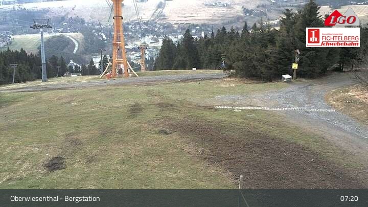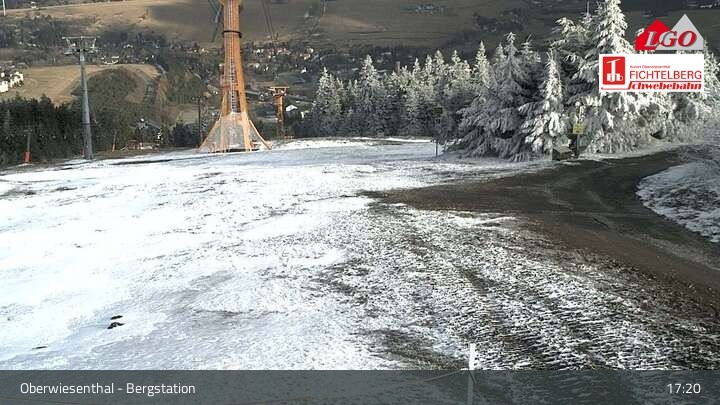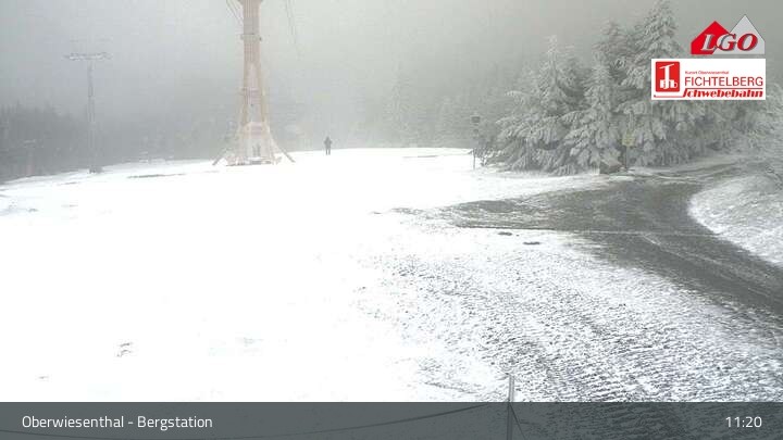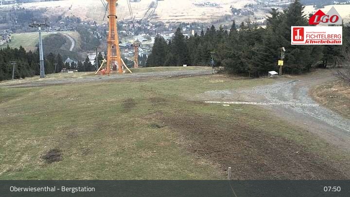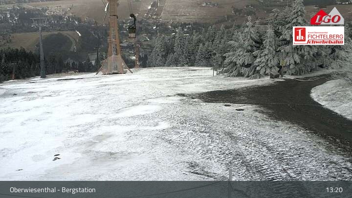 The webcam is located at the top station at the ski resort of Oberwiesenthal Fichtelberg. From there, it looks down upon Oberwiesenthal.