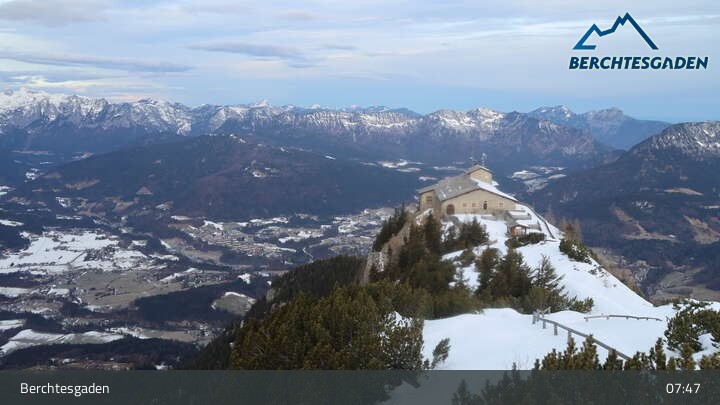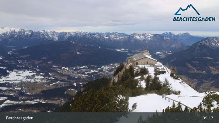 Vom Gipfel des Kehlstein zeigt diese Webcam unter anderem den Blick auf das Kehlsteinhaus und den Ort Berchtesgaden.