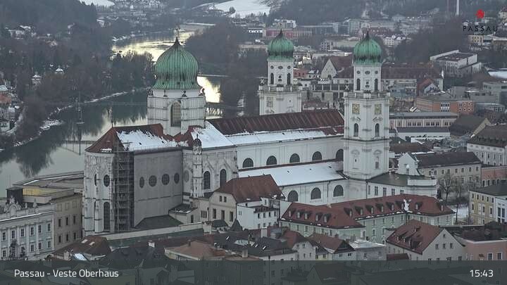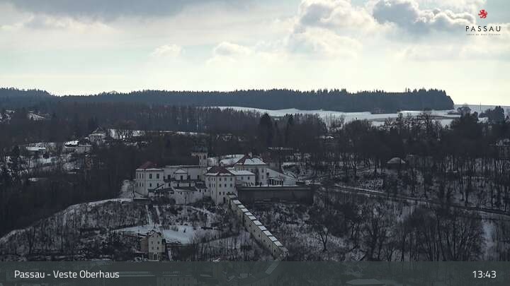 Die Webcam zeigt einen tollen Panoramablick von der Veste Oberhaus auf die Donau und die Altstadt von Passau. Neber der herrschaftlichen Burgfassade sieht man sehr gut die Landzunge zwischen Donau und Inn, auf der die Altstadt mit ihren denkmalgeschützten Häusern liegt. Gut zu erkennen sind unter anderem die Ortspitze am Zusammenfluss der drei Flüsse, das an der Donau liegende Rathaus, der weiße Dom St. Stephan und das erhöhte Kloster Mariahilf in der Innstadt.