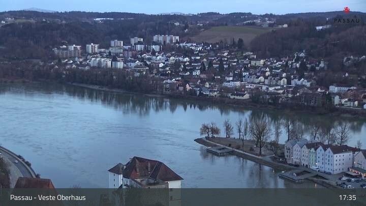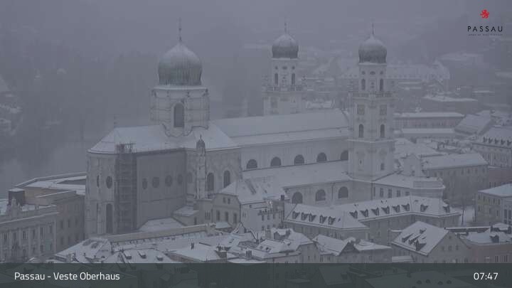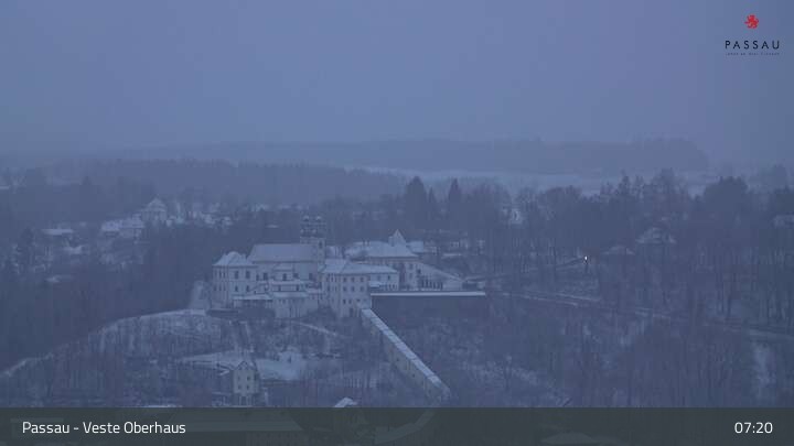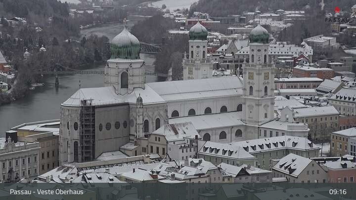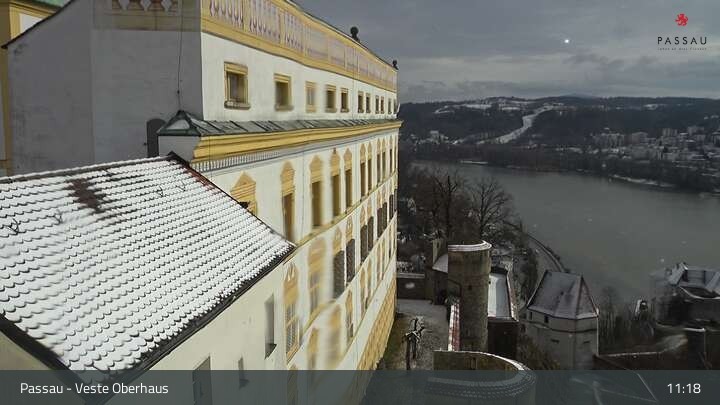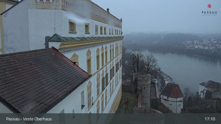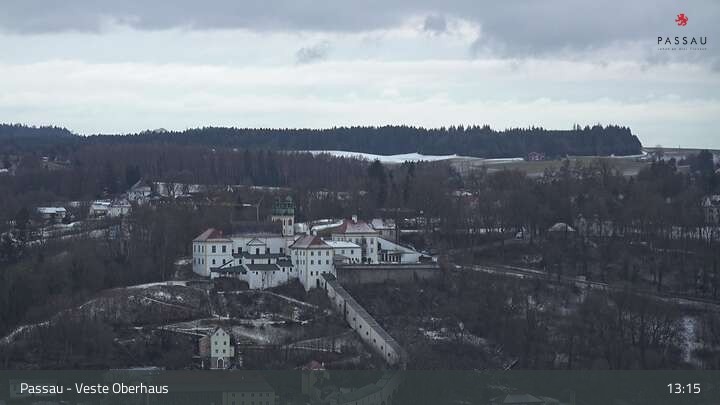 Die Webcam zeigt dir den Blick von der Veste Oberhaus über die Donau zur Altstadt der niederbayerischen Stadt Passau. Sehr gut zu erkennen sind links Teile der Burgveste, die Ortspitze wo die drei Flüsse Donau, Inn und Ilz zusammenfließen, die Hängebrücke über die Donau und rechts der weiße Stephansdom.