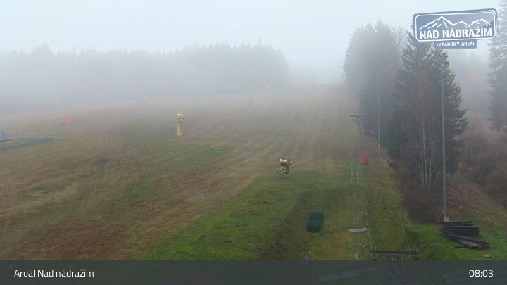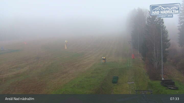 Die Webcam zeigt die Skilifte im Areal Nad nádražím bei Železná Ruda nahe der deutschen Grenze.