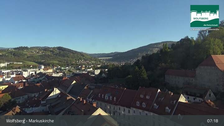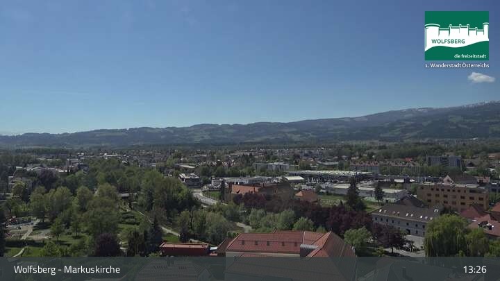 Diese Webcam befindet sich an der Markuskirche im Kärntner Ort Wolfsberg (Lavanttal, Österreich). Du kannst unter anderem die Altstadt sowie das Schloss Wolfsberg erkennen.