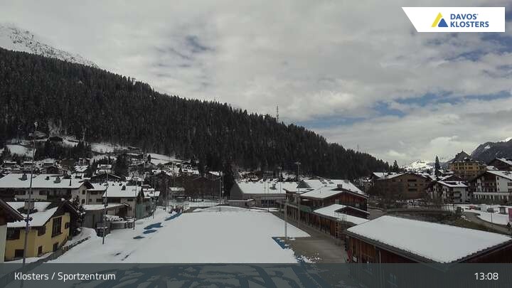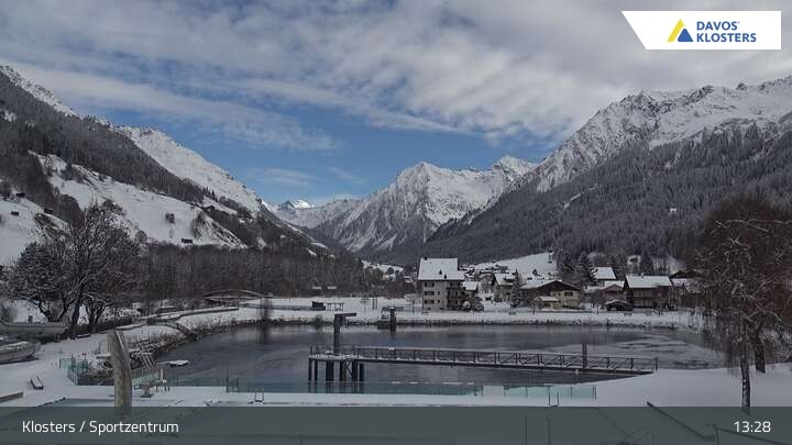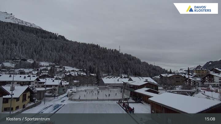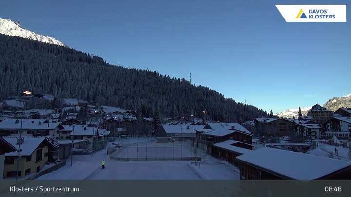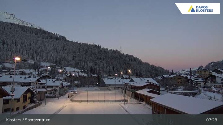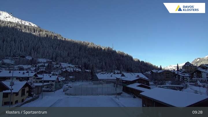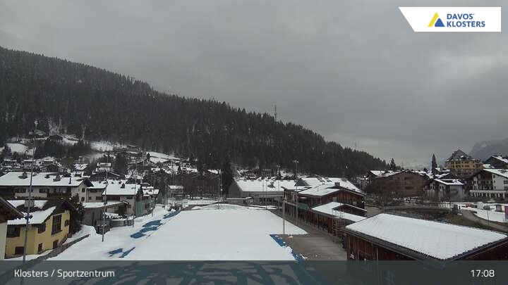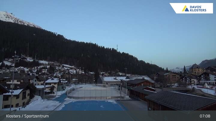 Hier siehst du das Sportzentrum und das Freibad in Klosters