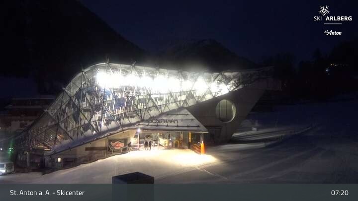 Diese Webcam zeigt dir den Blick vom Skicenter an der Talstation der Galzigbahn in St. Anton.
